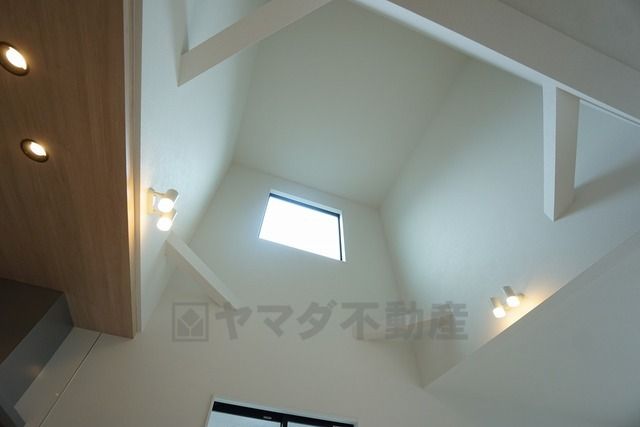 ダイニング上部が吹き抜けになっております。上下の空間が繋がってるので、ご家族の気配を感じられます^^