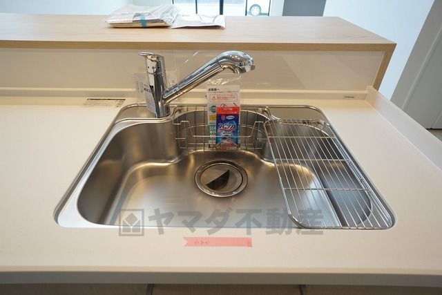 広々とした凸型シンクに洗剤ポケットを標準装備。大きなお鍋など洗いやすいです。洗剤や石鹸、スポンジもすっきりできる収納付き。
