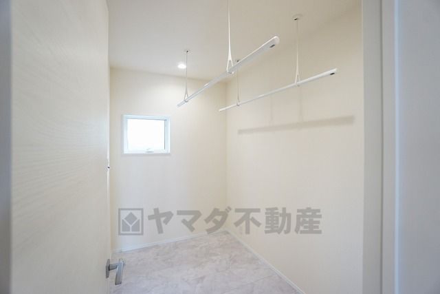 広々としたランドリールーム。室内物干しが2ヵ所付いており、たっぷり洗濯物が干せそうですね^^