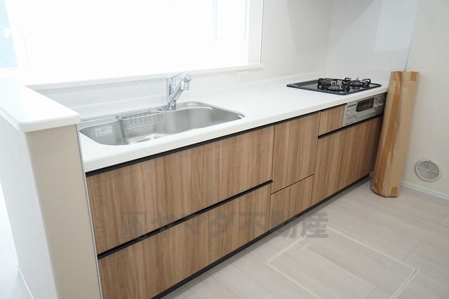 対面式カウンターキッチンでお子様の様子が見守れます。カウンタートップは耐熱性に優れており、日ごろのお掃除もふき取るだけでOK。