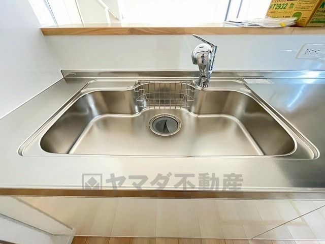 広々とした凸型シンクに洗剤ポケットを標準装備。大きなお鍋など洗いやすいです。洗剤や石鹸、スポンジもすっきりできる収納付き。