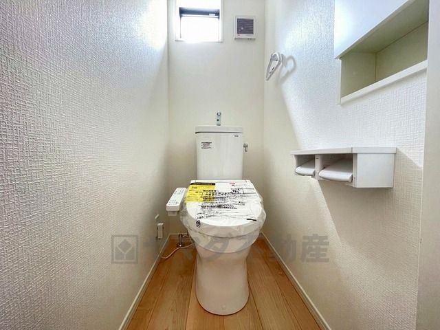 温水洗浄機付トイレです。節水機能もあるので、安心して使えますね。もちろん、1階2階の2ヶ所にトイレがあるので、忙しい朝にもゆとりができますね。