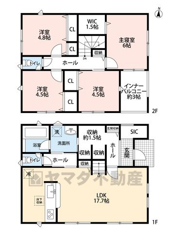 LDK17.7畳(1F)、洋6畳(2F)、洋4.8畳(2F)、洋4.5畳(2F) |