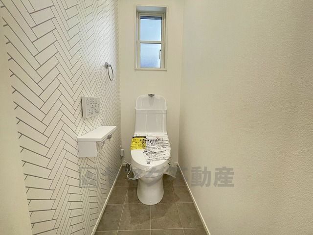 温水洗浄機付トイレです。節水機能もあるので、安心して使えますね。もちろん、1階2階の2ヶ所にトイレがあるので、忙しい朝にもゆとりができますね。