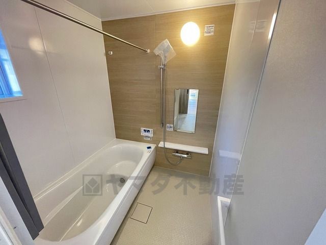 1日の疲れを癒すくつろぎのバスルーム。足を伸ばしてもゆったりと入れるサイズです。お子様と一緒にお風呂に入っても狭くないですね^^
