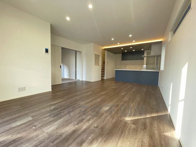 家族が集まる開放的なリビング。約17.5帖の大空間で毎日のお食事が楽しみです^^思い思いの時間を過ごしたり、家族みんなで食事をしたり、素敵な団らんの場になりますね。