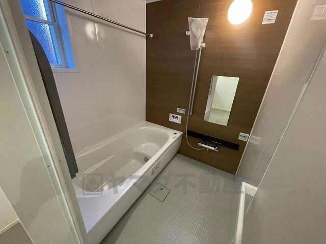 1日の疲れを癒すくつろぎのバスルーム。足を伸ばしてもゆったりと入れるサイズです。お子様と一緒にお風呂に入っても狭くないですね^^