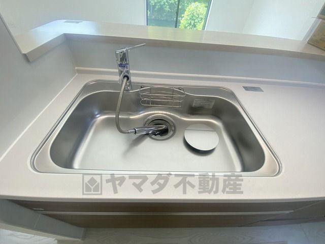 色も形もキレイなシンクは、広さも確保しているので、大きめの鍋も簡単に洗えます。