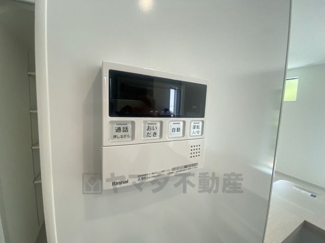 キッチン横からお湯張り、追い炊き、足し湯がボタン一つで楽々操作できる給湯機リモコンです^^忙しい夕飯の準備の時間帯に重宝しますね。