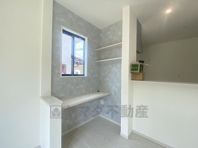 対面キッチン横にあるスタディーコーナー。キッチンからお子様のお勉強にも目が届きます。勉強やその他の作業もはかどりそうですね。