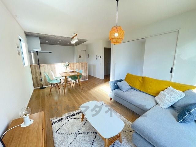 大きな窓のあるリビングは、陽光あふれる明るい空間です。居心地良く、ご家族皆がゆったり寛げる憩いの空間となりそうです。