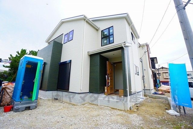 (1号棟)完成予想図。 流行に左右されないベーシックなカラーリングは、永住にふさわしい佇まいです。 建物ごとに間取りや色味が異なりますので、ぜひ一度現地で見比べてください