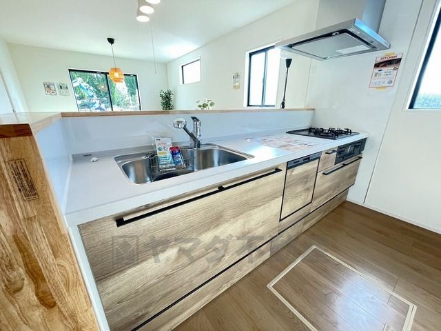 対面式カウンターキッチンでお子様の様子が見守れます。カウンタートップは耐熱性に優れており、日ごろのお掃除もふき取るだけでOK。ステンレスシンクも簡単にお掃除できますよ。