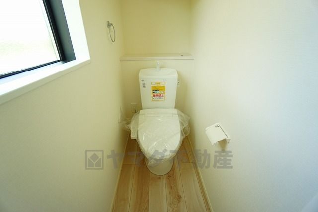 温水洗浄機付トイレです。節水機能もあるので、安心して使えますね。もちろん、1階2階の2ヶ所にトイレがあるので、忙しい朝にもゆとりができますね。