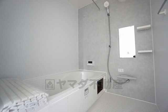 1日の疲れを癒すくつろぎのバスルーム。足を伸ばしてもゆったりと入れるサイズです。お子様と一緒にお風呂に入っても狭くないですね^^