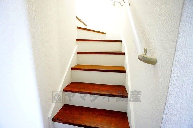 階段は段数を通常より1段多く段差を低く設定し、足元灯も完備。より安全な階段を追求しました。