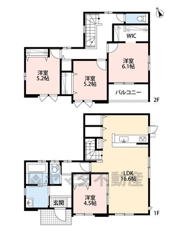 LDK16.6畳(1F)、洋4.5畳(1F)、洋6.1畳(2F)、洋5.2畳(2F) |