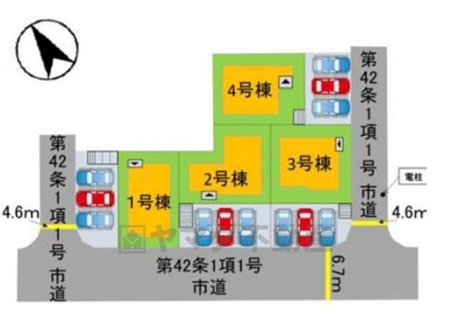 前面道路は西側約4.6m、南側約6.7m。 交通量が少なく小さなお子様がいるご家庭でも安心です^^