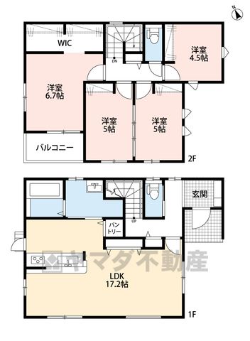 LDK17.2畳(1F)、洋6.7畳(2F)、洋5畳(2F)、洋4.5畳(2F) |