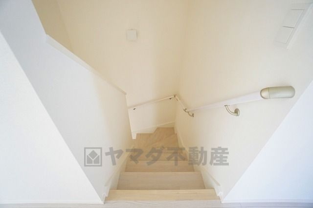 ご年配の方でも安心できる、手すり付き階段です^^段差も低めで設定されてますので安全性にも優れてますね^^