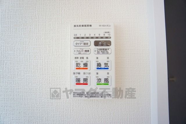 雨の日の洗濯も安心できる浴室暖房乾燥機付き浴室。リモコンで操作もボタン1つで簡単。 浴室暖房乾燥機には、暖房、乾燥、涼風、換気の4つの機能が付いています。タイマー付きです。