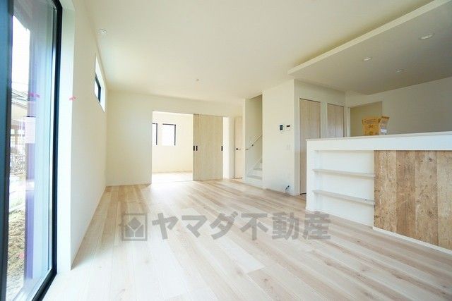 家族が集まる開放的なリビング。約18.5帖の大空間で毎日のお食事が楽しみです^^思い思いの時間を過ごしたり、家族みんなで食事をしたり、素敵な団らんの場になりますね。