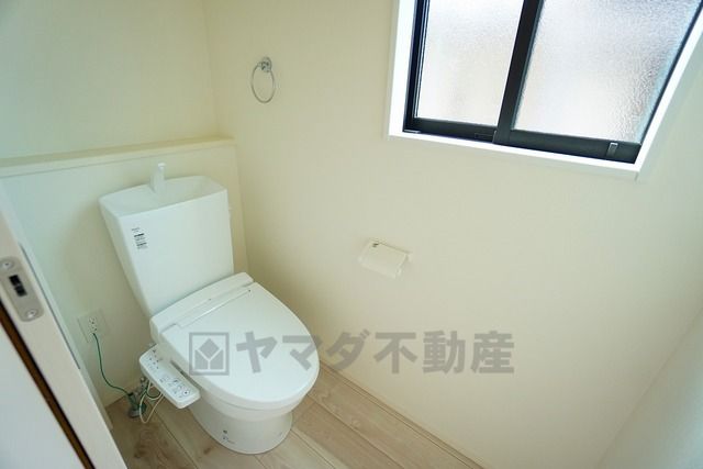 温水洗浄機付トイレです。節水機能もあるので、安心して使えますね。もちろん、1階2階の2ヶ所にトイレがあるので、忙しい朝にもゆとりができますね。