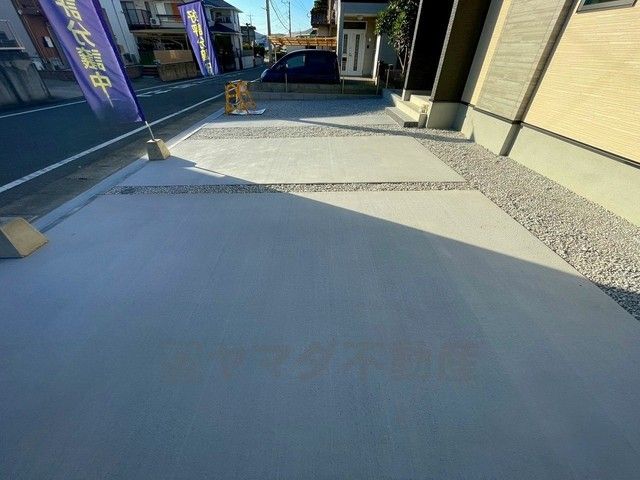 カースペース並列3台^^ 前面道路は南西側約6.5m。 幅広いため車の離合もスムーズです^^