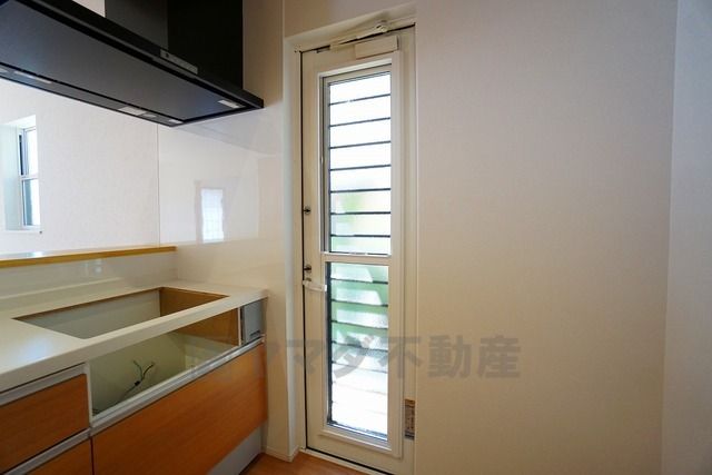 生ごみの仮置きに重宝する勝手口付きのキッチン^^ 生ごみの臭いに悩まされることがなくなりますね。