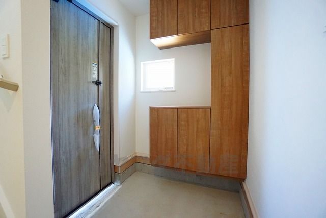 採光も考えられた明るい玄関です。自動で閉まるタッチキーとTVインターホンが装備されているので、セキュリティーも安心。