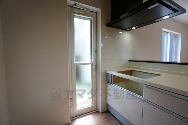 生ごみの仮置きに重宝する勝手口付きのキッチン^^ 生ごみの臭いに悩まされることがなくなりますね。
