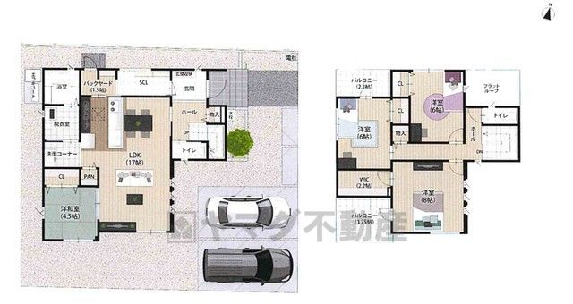 LDK17畳(1F)、和4.5畳(1F)、洋8畳(2F)、洋6畳(2F) |