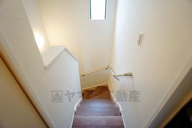 同仕様写真。ご年配の方でも安心できる、手すり付き階段です^^段差も低めで設定されてますので安全性にも優れてますね^^