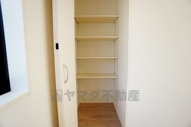 同仕様写真。可動棚式パントリー。食器やキッチン用品、食料品の保存に便利です^^可動棚式なので高さのある物もスッキリ収納できます^^