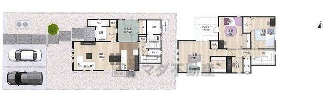 LDK18畳(1F)、和4.5畳(1F)、洋9畳(2F)、洋6畳(2F) |