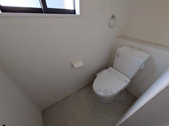 温水洗浄機付トイレです。節水機能もあるので、安心して使えますね。もちろん、1階2階の2ヶ所にトイレがあるので、忙しい朝にもゆとりができますね。