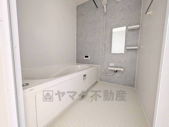 1日の疲れを癒すくつろぎのバスルーム。足を伸ばしてもゆったりと入れるサイズです。お子様と一緒にお風呂に入っても狭くないですね^^