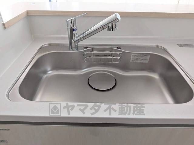 広々とした凸型シンクに洗剤ポケットを標準装備。大きなお鍋など洗いやすいです。洗剤や石鹸、スポンジもすっきりできる収納付き。
