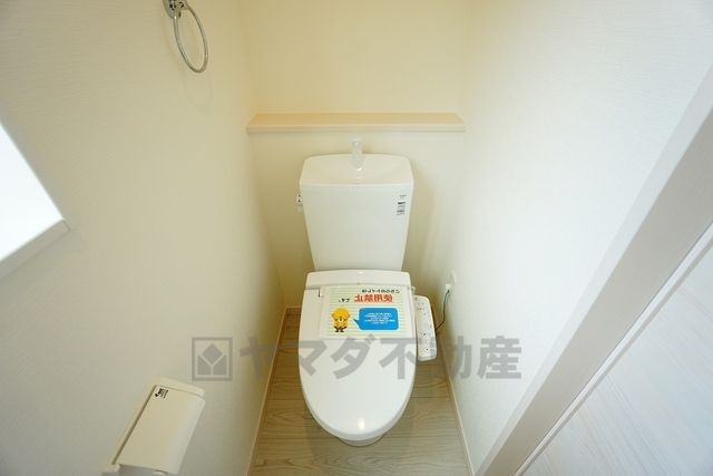 同仕様写真。温水洗浄機付トイレです。節水機能もあるので、安心して使えますね。もちろん、1階2階の2ヶ所にトイレがあるので、忙しい朝にもゆとりができますね。