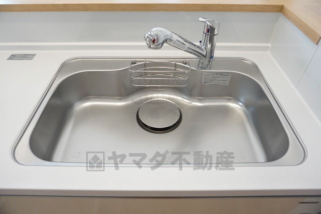 同仕様写真。広々とした凸型シンクに洗剤ポケットを標準装備。大きなお鍋など洗いやすいです。洗剤や石鹸、スポンジもすっきりできる収納付き。