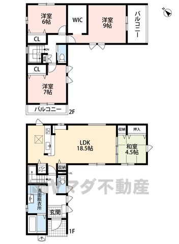 LDK18.5畳(1F)、和4.5畳(1F)、洋9畳(2F)、洋7畳(2F)、洋6畳(2F) |