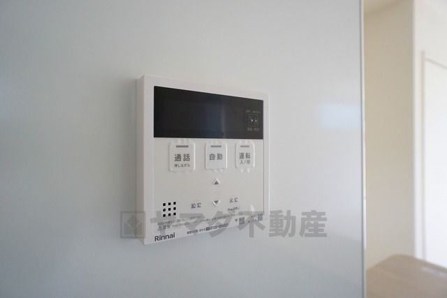 キッチン横からお湯張り、追い炊き、足し湯がボタン一つで楽々操作できる給湯機リモコンです^^忙しい夕飯の準備の時間帯に重宝しますね。