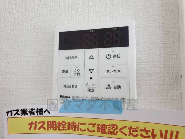 キッチン横からお湯張り、追い炊き、足し湯がボタン一つで楽々操作できる給湯機リモコンです^^忙しい夕飯の準備の時間帯に重宝しますね。
