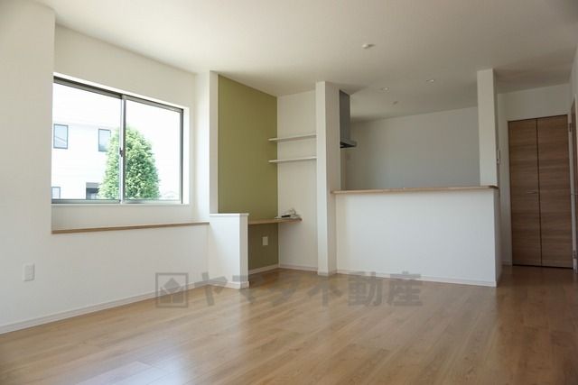 同仕様写真。大きな窓のあるリビングは、陽光あふれる明るい空間です。居心地良く、ご家族皆がゆったり寛げる憩いの空間となりそうです。