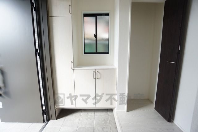 たっぷり収納できるシューズボックスです。家族全員の靴がきれいに整頓できます。棚の上にお花や写真を飾っても良いですね。