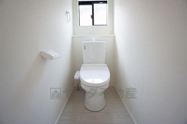 温水洗浄機付トイレです。節水機能もあるので、安心して使えますね。もちろん、1階2階の2ヶ所にトイレがあるので、忙しい朝にもゆとりができますね。