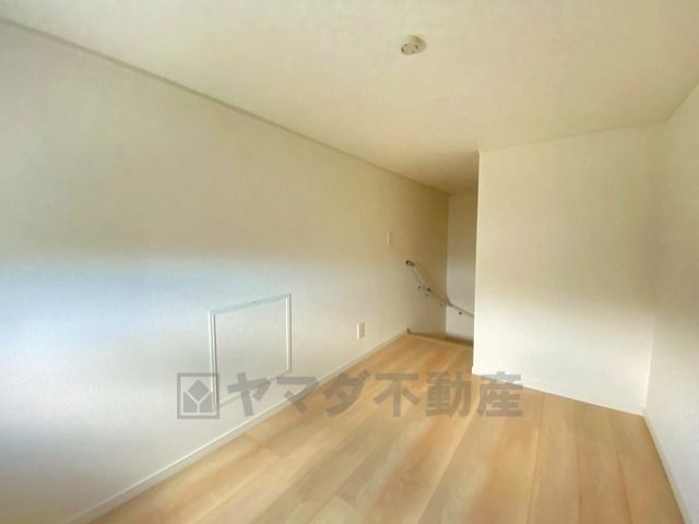 明るい洋室です。ナチュラル色のフローリングで開放的な優しい雰囲気になっています^^ベッドや机、TVを置いてもゆとりのある広さです。