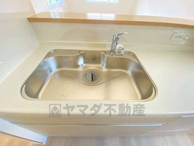 色も形もキレイなシンクは、広さも確保しているので、大きめの鍋も簡単に洗えます。