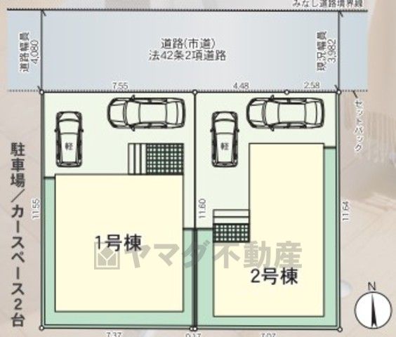2棟。カースペースは2台つき。