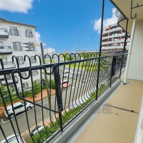 南側に面した大型のバルコニーは日当たり良好です。お洗濯物も気持ちよく干せそうです。